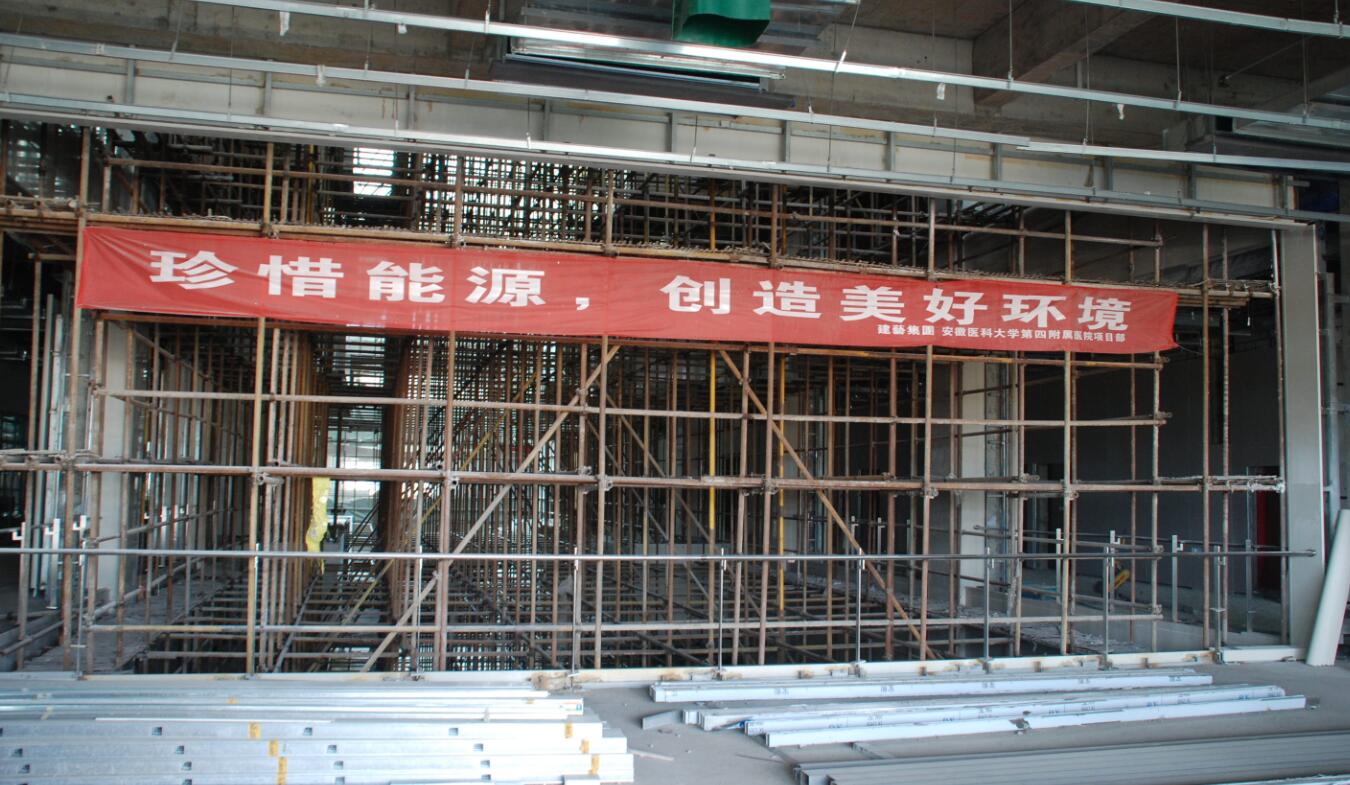 安徽醫科大學第四附屬醫院作為我司一個大型醫院項目,施工范圍為醫院鼎新樓住院部、醫技樓及地下室后廚餐廳的精裝修,該項目由于土建移交、醫療設備安裝、消防及空調安裝滯后等諸多因素,導致施工過程中嚴重缺少施工面,要確保在年前完成業主定下的“2015年底竣工驗收”的施工目標,給項目部留下的有效施工時間極其有限。建藝集團高度重視,調整充實了項目班子,集中精兵強將及優勢隊伍,精心部署、積極籌備,凝心聚力保目標,為工程全面開展做好充分的準備工作。
