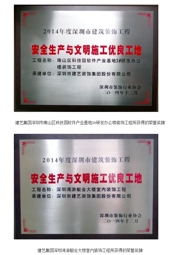 建藝集團(tuán)兩項(xiàng)工程獲評(píng)“2014年度深圳市安全生產(chǎn)與文明施工優(yōu)良工地”