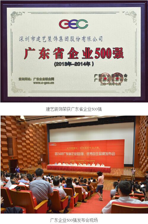 在本次大會上,“2014年廣東企業500強”、“廣東制造業100強”以及“廣東服務業100強”榜單的發布格外引人關注。深圳市建藝裝飾集團股份有限公司憑借多年來始終如一的優秀綜合競爭實力,在本次榜單評選中再次獲得肯定,躋身廣東省企業五百強,且排名靠前,優異的成績在行業內可謂是備受矚目。建藝集團行政管理中心總監趙紂瑜參加會議。