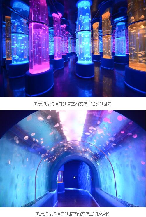 歡樂海岸位于深圳灣商圈核心,占地面積約125萬平方米,是集文化、生態(tài)、旅游、娛樂、購物、餐飲、酒店、會所等多元業(yè)態(tài)于一體的都市娛樂目的地,是深圳市致力打造的高品質(zhì)人文旅游、國際創(chuàng)意生活空間中心。建藝集團(tuán)承建了海洋奇夢館室內(nèi)裝飾裝修以及水電、空調(diào)等施工內(nèi)容。本工程天花和墻面全部采用異型GRG裝飾板,以滿足設(shè)計(jì)對造型的要求。地面鋪貼新型建筑板材——SRC增強(qiáng)玻璃纖維改良水泥板,電氣安裝則全部采用LED節(jié)能燈具,通過光與影的交錯(cuò),營造出如夢似幻的海底世界奇觀。