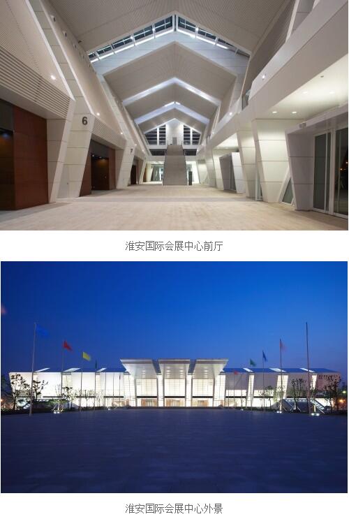 淮安國際會展中心位于江蘇省淮安市翔宇大道以西,越秀路以南的水渡口中央商務區,是水渡口CBD板塊的核心區域,區位交通便利。淮安國際會展中心以其國際風格的建筑設計和先進完善的功能分區,成為淮安向外界展示城市快速發展及經濟騰飛的標志。本工程的設計單位——著名的德國GMP國際建筑設計有限責任公司秉承了德意志民族嚴謹和創新的特點,提出了國內裝飾界很少采用甚至是國內首創的施工要求。淮安國際會展中心的建筑風格簡潔、統一、真實,展示了一種嚴謹的屬于德國的理性主義設計風格,所有設計完全服從于功能、美學和精神的需要。在呈現整體簡潔的同時,細部構造和材料的運用也體現了德國特有的機械、細膩和精致。GMP更注重體現會展中心建筑本身的結構美,一種源于建筑本身的真實的結構力學,大跨度鋼結構的結構魅力。