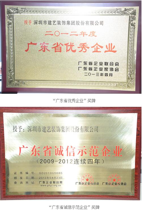 建藝集團再次榮獲“廣東省優秀企業”、“廣東省誠信示范企業”稱號