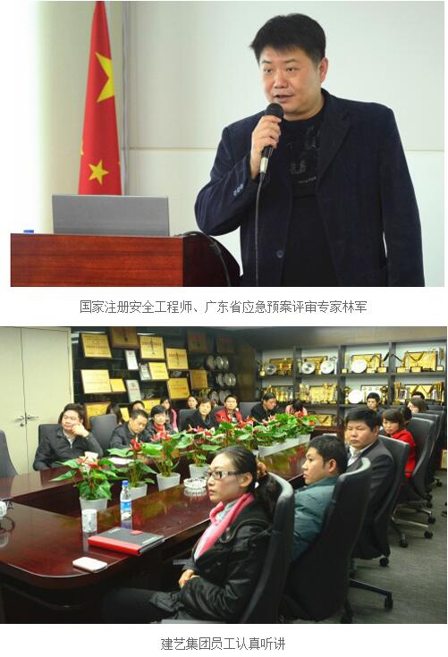 12月17日,建藝集團特邀國家注冊安全工程師、廣東省應急預案評審專家林軍蒞臨集團總部,演講安全應急預案及常識。