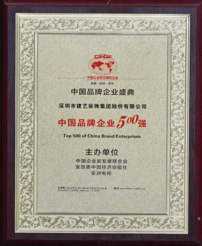 建藝集團(tuán)獲評(píng)為“中國品牌企業(yè)500強(qiáng)”