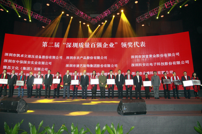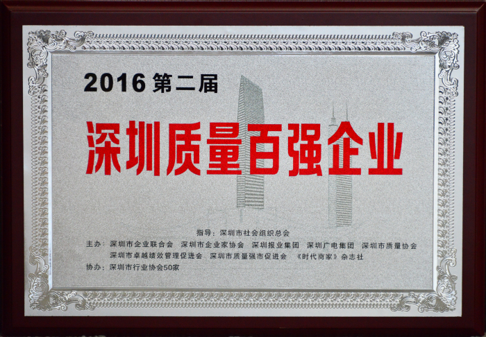 建藝集團(tuán)喜獲“2016第二屆深圳質(zhì)量百?gòu)?qiáng)企業(yè)”榮譽(yù)獎(jiǎng)牌