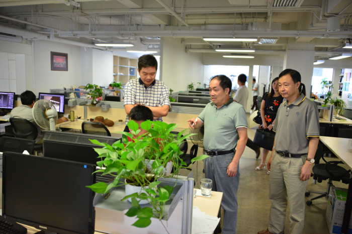 劉鎮河會長(右二)等在趙紂瑜副總裁的帶領下參觀建藝集團設計研究院