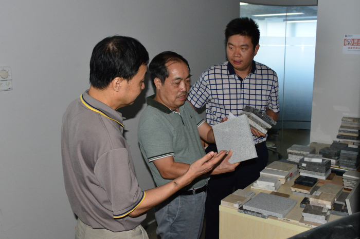 趙紂瑜副總裁向劉鎮河會長等介紹裝飾材料