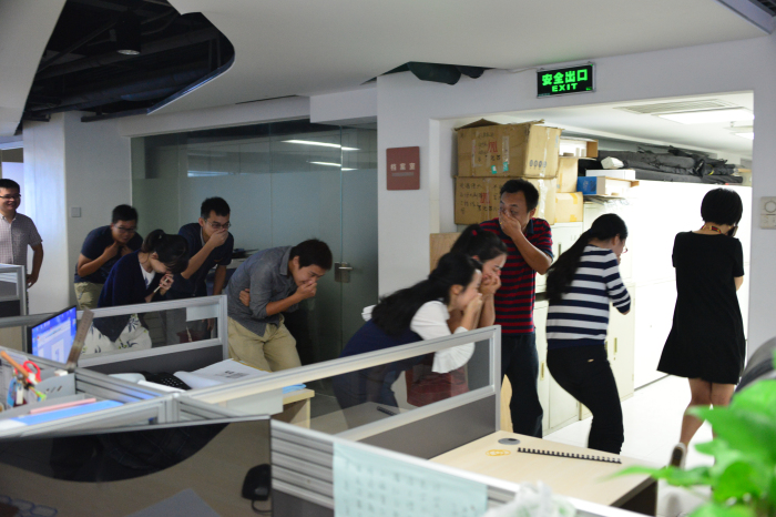 建藝集團(tuán)員工在煙霧中尋找逃生通道