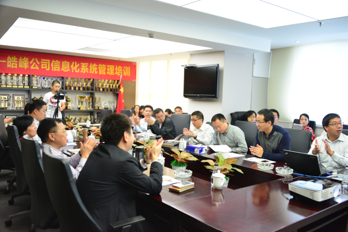 期間,深圳市皓峰通訊技術(shù)有限公司毛孝鹍總經(jīng)理、劉棟華副總經(jīng)理以及劉彬?qū)嵤┙?jīng)理則分別就建藝集團信息化系統(tǒng)管理項目工作的進度情況和基礎(chǔ)操作知識等進行了匯報及說明。集團信息化系統(tǒng)管理項目啟動實施至今,主要成果如下: