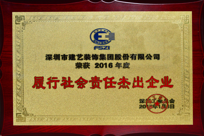 建藝集團(tuán)榮獲2016年度“履行社會(huì)責(zé)任杰出企業(yè)”及“深圳工匠培育示范單位”稱(chēng)號(hào)