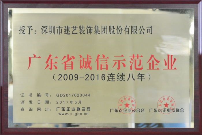 建藝集團(tuán)蟬聯(lián)“廣東省優(yōu)秀企業(yè)”及“廣東省誠信示范企業(yè)”