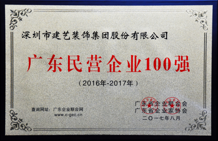 在入選的深圳企業陣營中,作為建筑裝飾行業首屈一指的標桿企業,建藝集團自從成功登陸資本市場加快多元化發展步伐以來,以高速穩健的發展狀態昂首前行,榮獲國家高新技術企業認證,并蟬聯廣東省優秀企業、廣東省誠信示范企業、中國建筑裝飾行業百強企業前十名等。本次蟬聯“廣東企業500強”并榮獲“廣東民營企業100強”,一方面證明建藝集團的發展成績獲得了各方肯定,企業綜合實力繼續穩健增強;另一方面,也表現了建藝集團成功上市以來,在劉海云董事長的有力領導下,企業品牌信譽度及影響力得到了極大提升,在業界乃至全省企業界的良好口碑得到了更充分的認可,企業發展速度可謂是有目共睹。