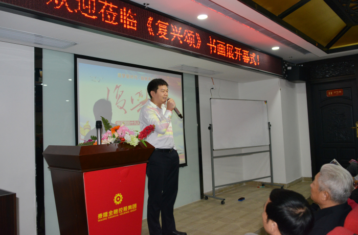 10月29日,由深圳市清風書畫研究院和建藝集團等二十多家單位聯合舉辦的慶祝十九大書畫作品展覽——《復興頌》在泰隆國際文化藝術品交易中心開幕。展覽以“追夢新時代?揚帆再起航”為主題,展出了兩百多幅書畫作品。建藝集團副總裁趙紂瑜作為集團代表出席書畫展開幕式并致辭。