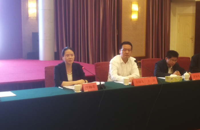 河源市市長葉梅芬等領導在會上歡迎企業代表們
