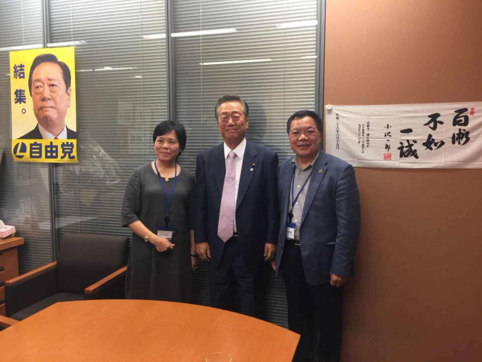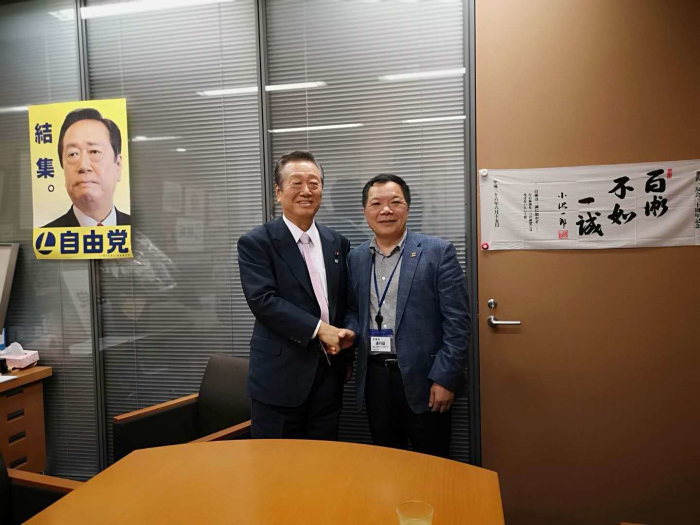 小澤一郎議員(左一)熱情接見(jiàn)劉海云董事長(zhǎng)