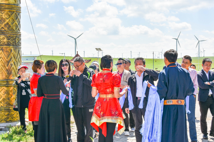 19日,內蒙古公司還組織各參會領導來到了美麗壯觀的輝騰錫勒草原及揚名國際的黃花溝風景區,領略大自然的鬼斧神工與草原文化的獨特魅力。在天高云淡的草原上,劉董等與會領導心曠神怡,不時合影留念。當晚,在熱鬧的蒙古包內,內蒙古公司人員更是精心奉上了一場主題為“草原之夜”的篝火晚會,劉董更是在全場人員的熱情歡呼中,登臺講話,將本次活動的氛圍推向了最高潮!