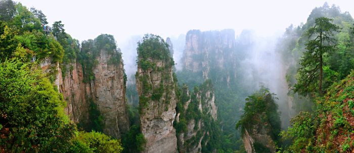 第三站,員工們游覽了張家界國家森林公園,感受了位于袁家界景區、被譽為“中國埃菲爾鐵塔”的“百龍天梯”。該電梯位于山谷之間,總高度326米。在電梯上升過程中,游客可觀群山聳立,懸崖絕壁,乃自然景觀與人造景觀的完美結合。