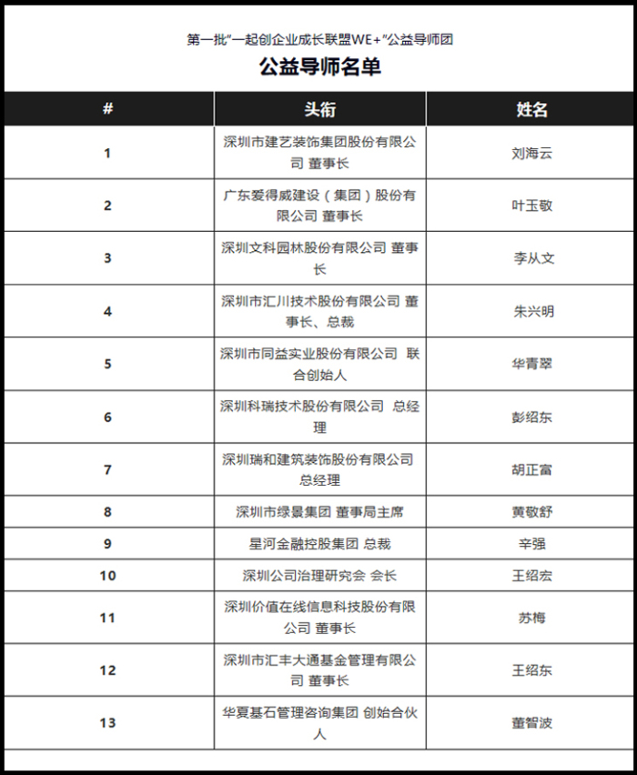 大咖云集——第一批“一起創(chuàng)企業(yè)成長聯(lián)盟(We+)”公益導師名單