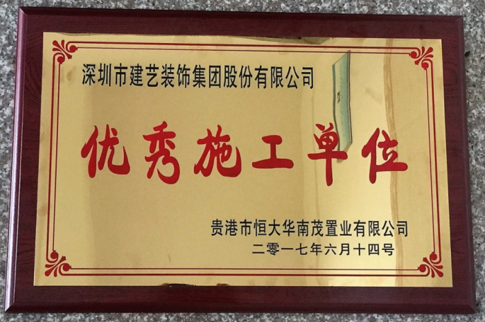 貴港市恒大華南茂置業有限公司授予建藝集團榮譽獎牌