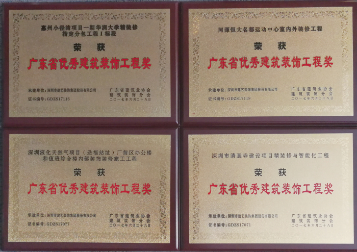 建藝集團(tuán)喜獲4項“2017年廣東省優(yōu)秀建筑裝飾工程獎”