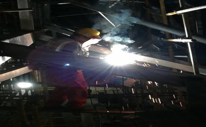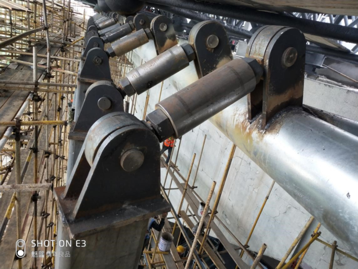 在施工過程中,有關該工程技術上的創新層面,樊華向我們介紹道:“山西太原濱河體育中心改擴建工程施工過程中,由于建筑物的屋頂主體是大跨度的網架結構,存在外力荷載作用,網架變形的實際情況。項目經理鐘正成在深化設計中,采用了雙向鉸接機構,既可傳遞幕墻水平荷載,又可適應屋面的位移,在幕墻與屋面隔墻間采用風琴橡膠板連接,一方面可保證幕墻的密封性能,另一方面可保證幕墻面板不被屋面較大的變形所破壞。鋼架底部的柱腳也在深化設計中既考慮了水平荷載和豎向荷載的安全功能性,又兼顧了室內外的美觀性,采用了鉸接連接與焊接相結合的工藝,此項設計得到了建設單位及設計院的一致認可并給予高度贊揚。”
