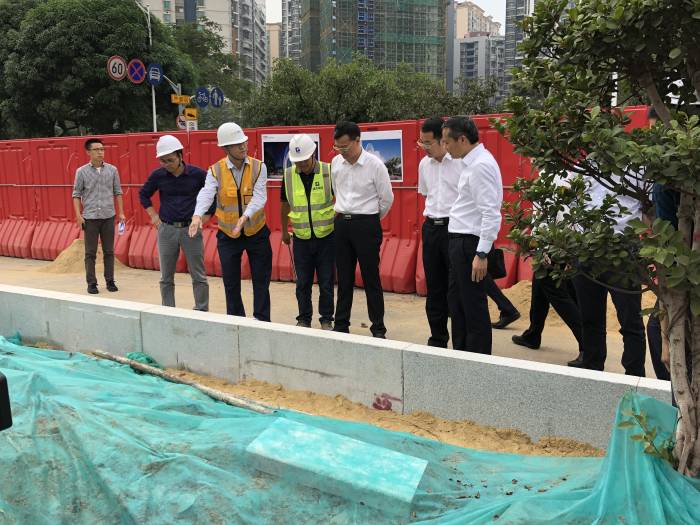11月13日,寶安區(qū)委書記姚任、副區(qū)長朱恩平帶隊(duì)到四方公園項(xiàng)目現(xiàn)場,就景觀設(shè)計(jì)方案等進(jìn)行考察。華潤、建藝集團(tuán)等單位的相關(guān)負(fù)責(zé)人在現(xiàn)場陪同參觀,并就項(xiàng)目整體設(shè)計(jì)、施工要點(diǎn)等進(jìn)行了介紹及匯報(bào)。