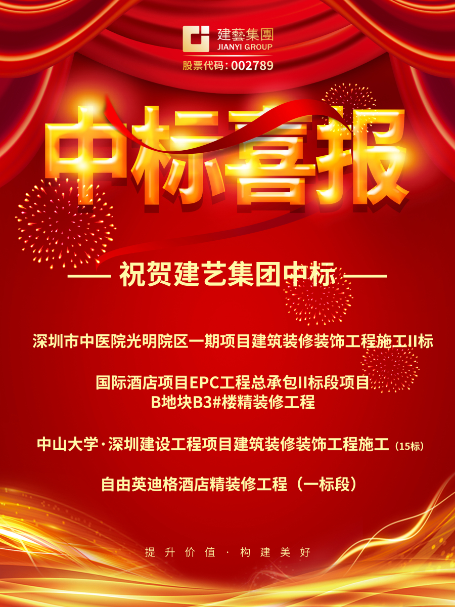【中標喜訊】捷報頻傳:建藝集團新晉中標深圳市建筑工務署重點項目等逾2.5億