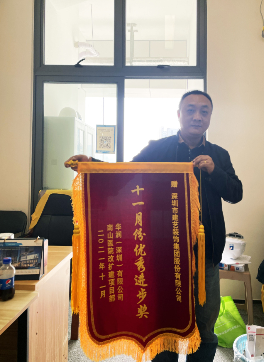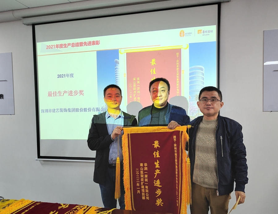 日前,南山醫院改擴建項目部召開“2021年度生產總結暨先進表彰會”,重點表揚了一批在項目建設過程中表現突出、成績優異、作風一流的參建單位。建藝團隊憑借一流的精細化管理與高品質施工把控,得到了華潤(深圳)有限公司南山醫院改擴建項目部等相關各方的一致認可,獲評為“2021年度最佳生產進步獎”。