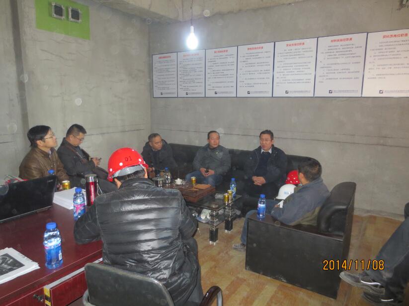 佳兆業(yè)集團(tuán)體驗(yàn)中心總經(jīng)理李海鳴(右二)等領(lǐng)導(dǎo)與項(xiàng)目部人員進(jìn)行座談