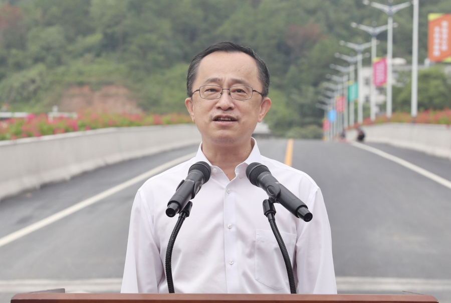 梅州市委書記、市人大常委會主任陳敏宣布大橋竣工通車