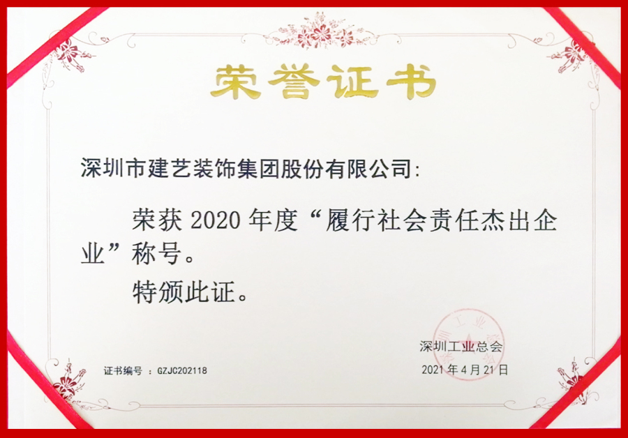2020年度履行社會責(zé)任杰出企業(yè)(建藝集團(tuán))