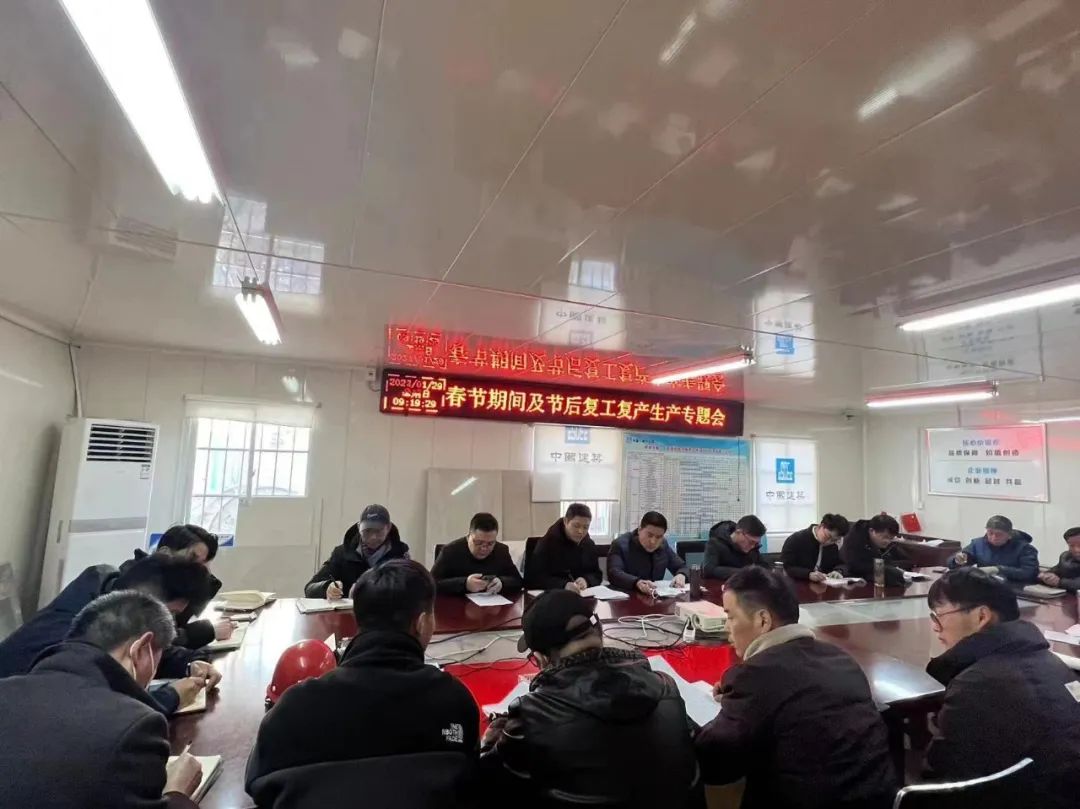 復工第一天,項目部便立即召開復工復產生產專題會,聽取各環(huán)節(jié)工程進度情況匯報,積極部署各項工作安排。會上,大家“干勁十足”,表示將嚴格按照節(jié)點要求高質量完成項目建設。