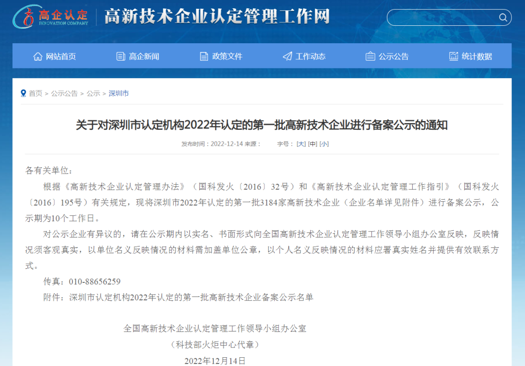 △國(guó)家高新技術(shù)企業(yè)認(rèn)定管理工作網(wǎng)公示名單