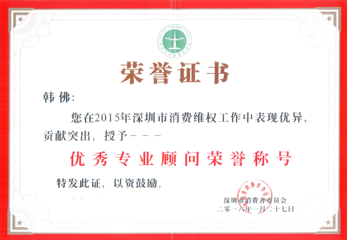 會議最后對在2015年消費(fèi)維權(quán)工作中表現(xiàn)突出的7位專業(yè)顧問進(jìn)行表彰,建藝集團(tuán)工程總監(jiān)韓佛獲“優(yōu)秀專業(yè)顧問”榮譽(yù)稱號,頒獎儀式后會議順利結(jié)束。