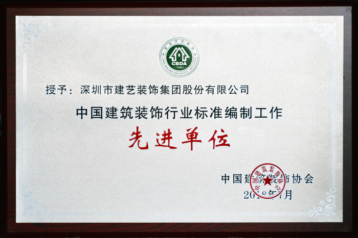 熱烈祝賀建藝集團榮獲“中國建筑裝飾行業標準編制工作先進單位”稱號