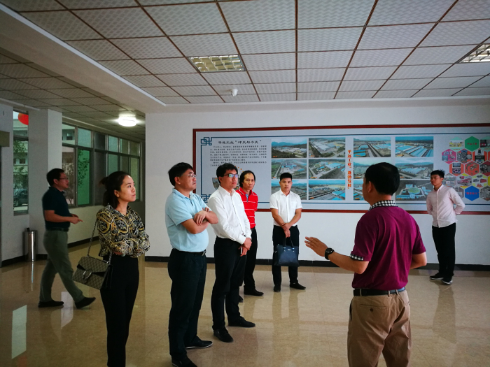 劉海云董事長向考察團一行介紹工業(yè)園情況