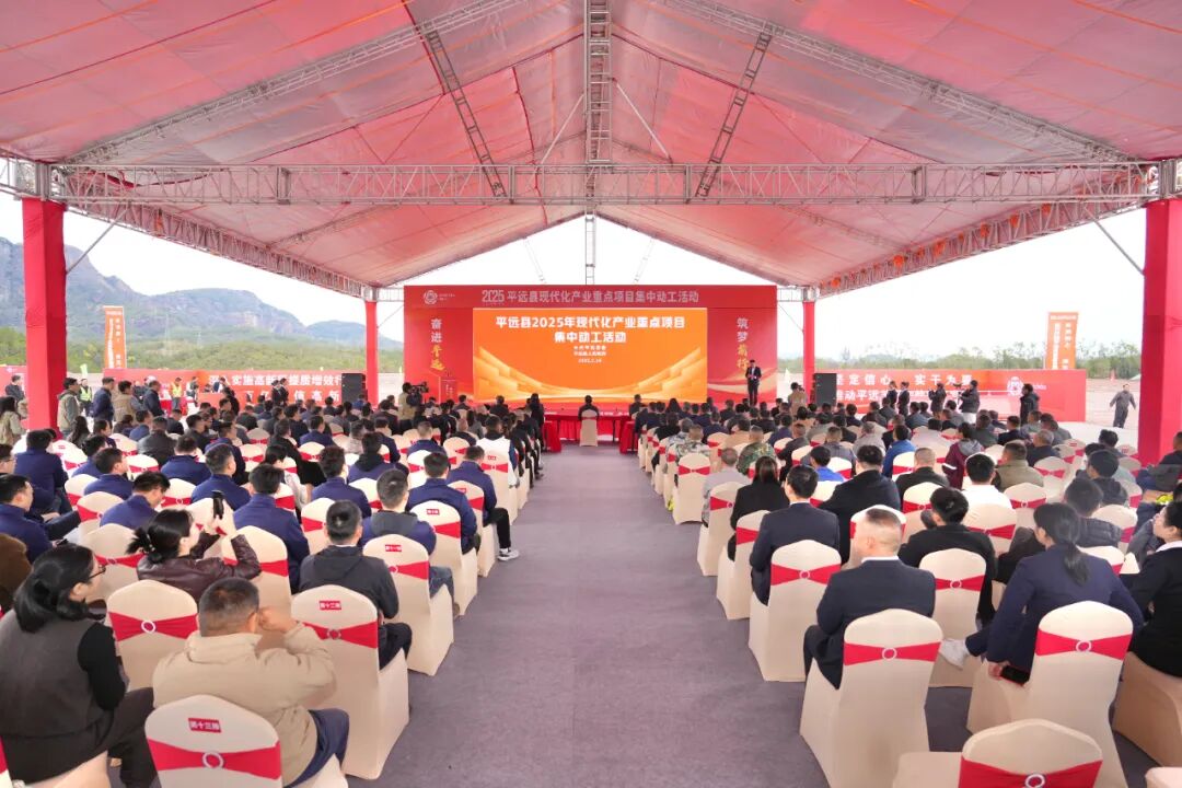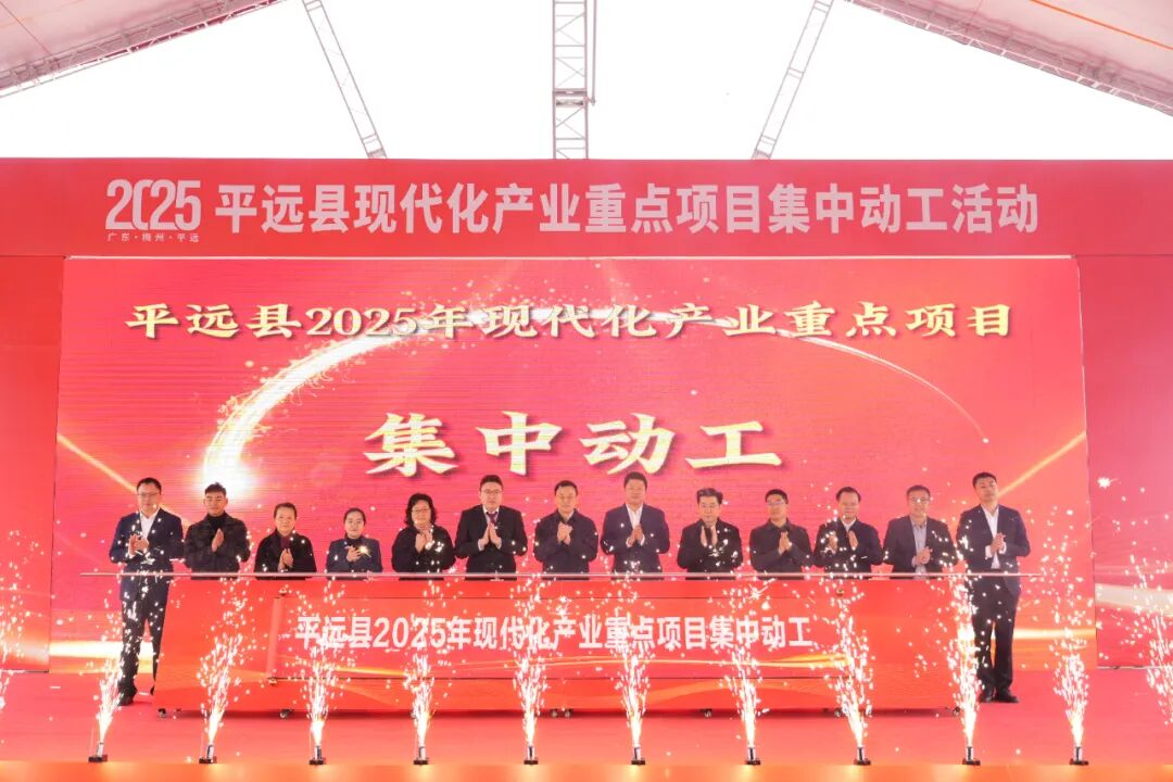 2月18日,平遠縣2025年現代化產業重點項目集中動工活動在梅州平遠高新區舉行。梅州市委書記馬正勇、市長王暉;市領導楊朝暉、曾永祥、藍偉東;平遠縣委書記周小勇;縣長喻勇;珠海正方集團黨委書記、董事長,建藝集團董事長唐亮等出席活動。